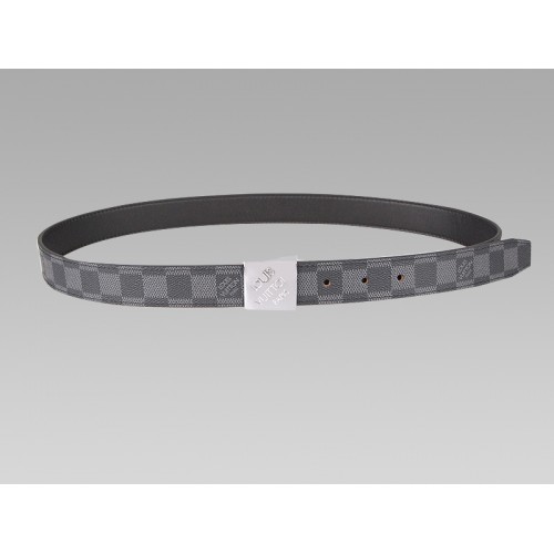 Pasek grafitowy Damier Cut ze srebrną klamrą i ukośnym podpisem Louis Vuitton