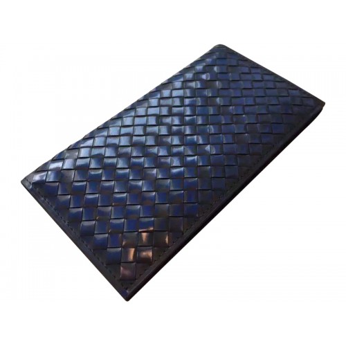 Portfel kontynentalny Bottega Veneta w kolorze Pacific Intrecciato, polerowanej czerni