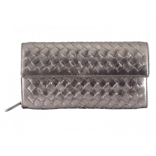Portfel kontynentalny Bottega Veneta Intrecciato Nappa z guzikiem w kolorze srebrnoszarym