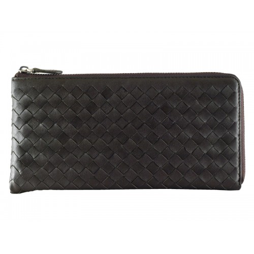 Portfel Bottega Veneta Intrecciato ze skóry nappa zapinany na zamek Choco