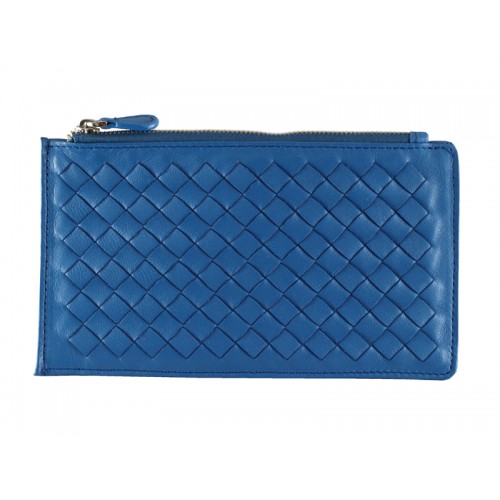 Portfel Bottega Veneta Intrecciato ze skóry Nappa, zapinany na zamek, niebieski