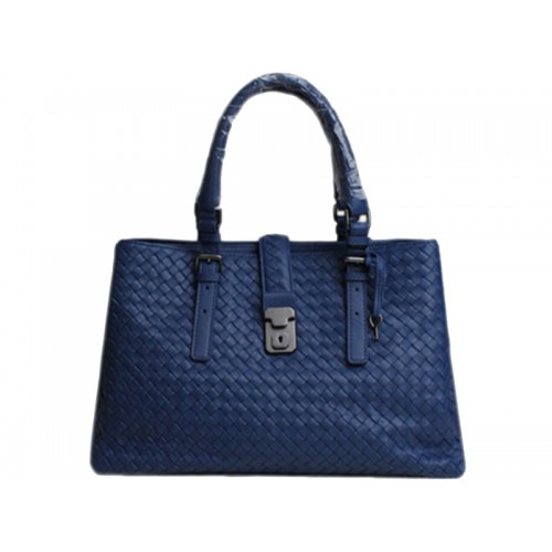 Skórzana torba Bottega Veneta Roma Intrecciato w kolorze ciemnoniebieskim