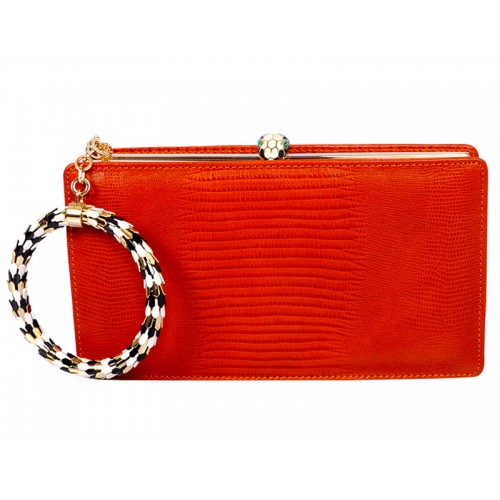 Oprawiona saszetka Bvlgari Serpenti w pomarańczową skórę jaszczurki