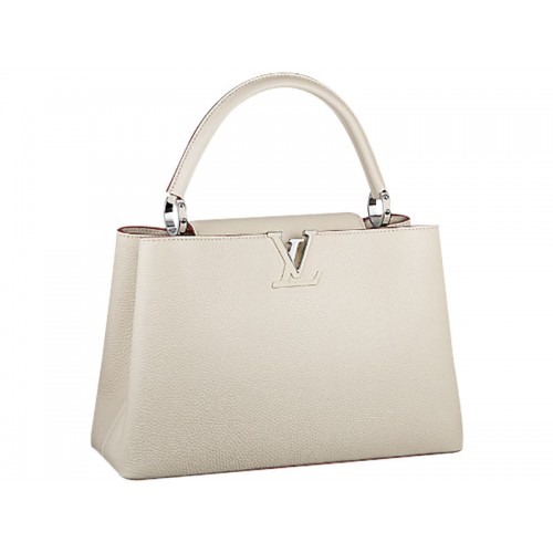Ta torba Louis Vuitton Capucines MM w kolorze złamanej bieli M48865 jest dostarczana z numerami seryjnymi, kartą autentyczności Louis Vuitton, workiem na kurz Louis Vuitton i broszurą pielęgnacyjną Louis Vuitton.