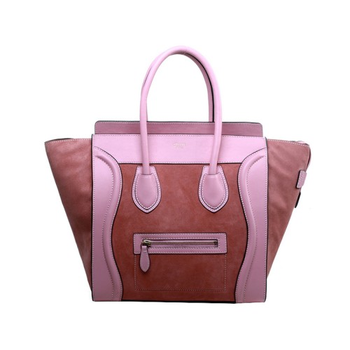 Torba podróżna Celine Luggage średniej wielkości ze skóry cielęcej w kolorze różowym/zamszowym