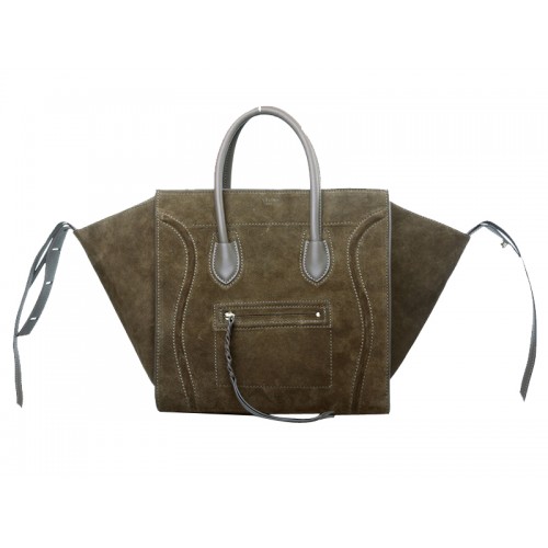 Torba Celine Luggage Phantom Square Tote Bag ze skóry zamszowej w kolorze oliwkowym