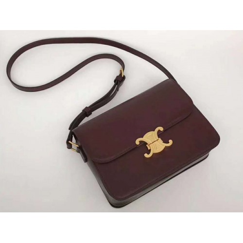 Torebka Celine Medium Triomphe z błyszczącej skóry cielęcej w kolorze bordowym