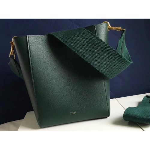 Celine Sangle Mała torebka typu bucket z miękkiej licowej skóry cielęcej w kolorze zielonym