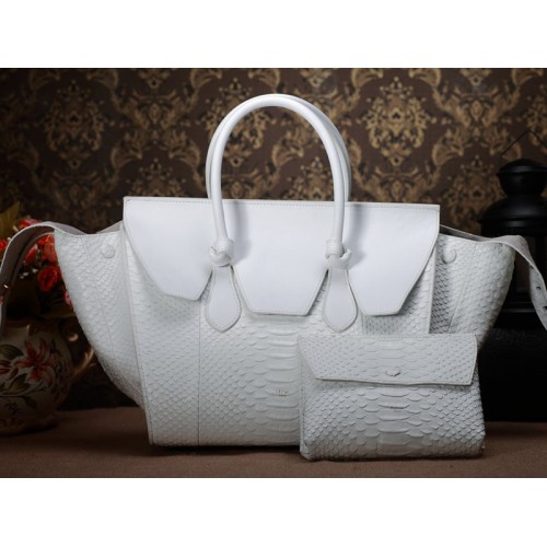 Torebka Celine Tie Nano z uchwytem u góry, skórzana, biała, pytonowa