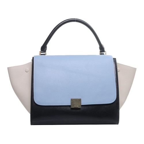 Torebka na ramię Celine Trapeze Multicolor ze skóry cielęcej w kolorze jasnoniebieskim/czarnym/kremowym
