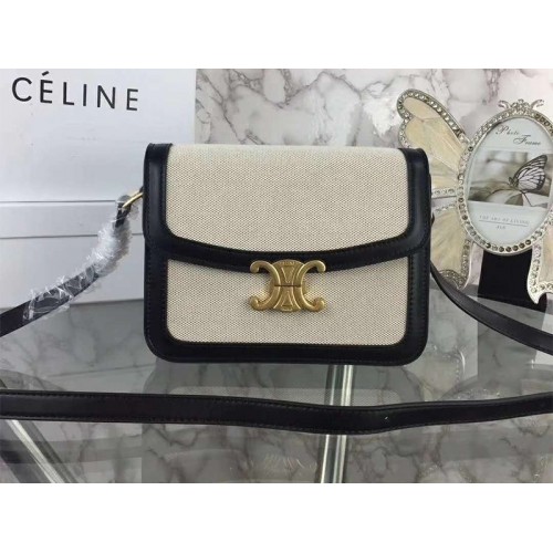 Duża torba Celine Triomphe z materiału tekstylnego i naturalnej skóry cielęcej w kolorze czarnym