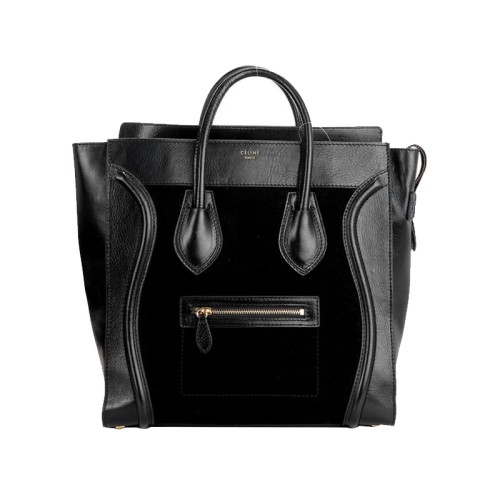 Duża torba podróżna Celine ze skóry cielęcej w kolorze czarnym/zamszu w kolorze czarnym
