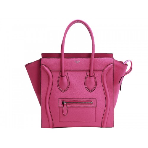 Torba podróżna Celine Luggage Medium Tote ze skóry cielęcej w kolorze fluorescencyjnego różu