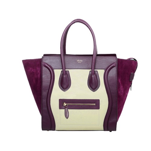 Torba podróżna Celine Luggage średniej wielkości ze skóry cielęcej w kolorze jasnobeżowym/zamszowym w kolorze wina