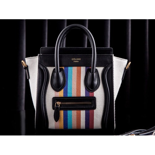 Celine Luggage Mini Tote Canvas White & Rainbow