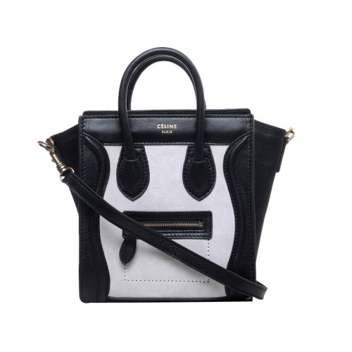 Mała torba podróżna Celine Luggage Tote ze skóry cielęcej w kolorze czarnym/zamszowym w kolorze złamanej bieli