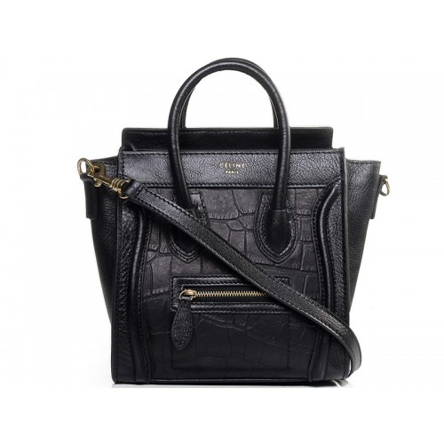 Mini torba Celine Luggage ze skóry cielęcej w kolorze czarnym z czarną skórą krokodyla