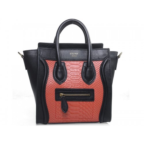 Mini torba Celine Luggage ze skóry cielęcej w kolorze czarnym z czerwoną skórą wężową