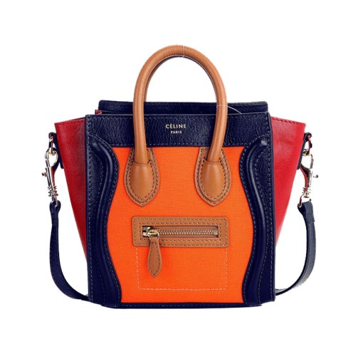 Mała torba podróżna Celine w kolorze niebieskim ze skóry cielęcej/pomarańczowym z płótna