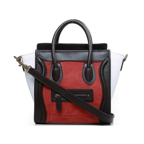 Mała torba podróżna Celine Luggage Tote ze skóry cielęcej w kolorze czekoladowo-zamszowym, pomarańczowo-czerwonym