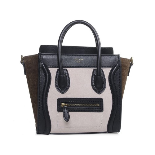 Mała torba podróżna Celine Luggage Tote ze skóry cielęcej w kolorze jasnobeżowym/zamszowym w kolorze oliwkowym