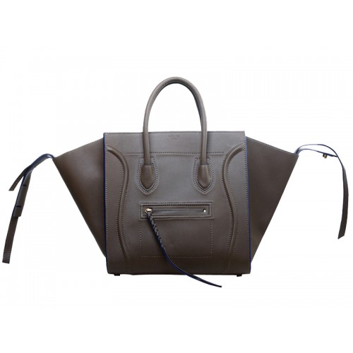 Torba typu tote Celine Luggage Phantom Square w kolorze szarym z niebieskimi wykończeniami