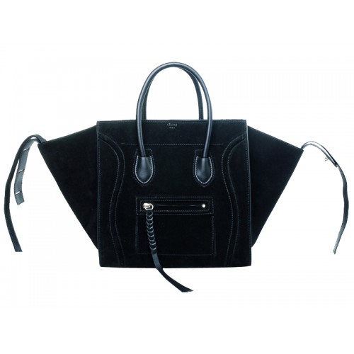 Torba Celine Luggage Phantom Square Tote Bag ze skóry zamszowej w kolorze czarnym