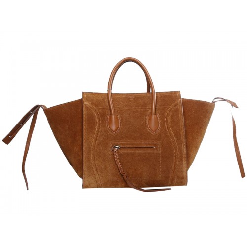 Torba Celine Luggage Phantom Square Tote Bag ze skóry zamszowej w kolorze camelowym