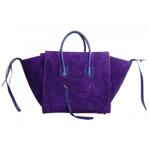 Torba Celine Luggage Phantom Square Tote Bag ze skóry zamszowej w kolorze fioletowym