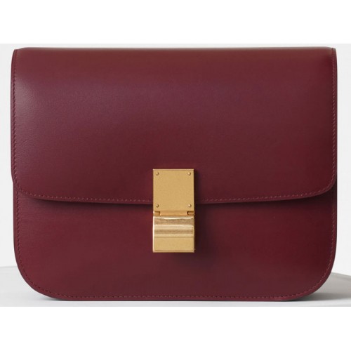 Celine Średnia Klasyczna Torebka w Pudełku Skóra Cielęca Burgundowa 1641731