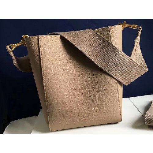 Celine Sangle Mała torebka typu bucket z miękkiej licowej skóry cielęcej w kolorze beżowym
