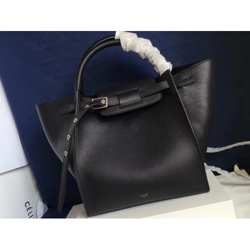Mała duża torba Celine z długim paskiem z miękkiej, licowej skóry cielęcej w kolorze czarnym