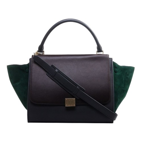 Torba na ramię Celine Trapeze, skóra cielęca, brązowo-zamszowa, zielona