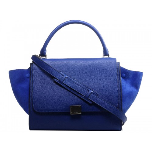 Torba na ramię Celine trapezowa ze skóry cielęcej i zamszu w kolorze niebieskim