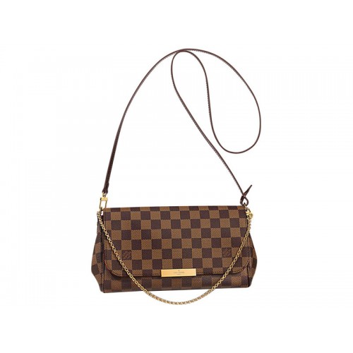 Wszechstronny Pochette Favorite wygląda zachwycająco na płótnie Damiera Ebène. Jego czysty, kobiecy kształt sprawia, że idealnie nadaje się na każdą okazję.