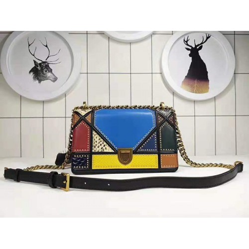 Torba Dior Diorama z cielęcej skóry w patchworkowym wielokolorowym błękicie