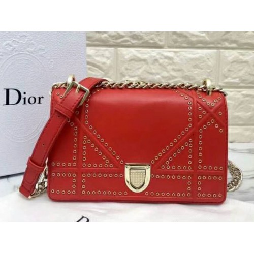 Dior Mała torebka Diorama z cielęcej skóry w kolorze czerwonym d0421-12