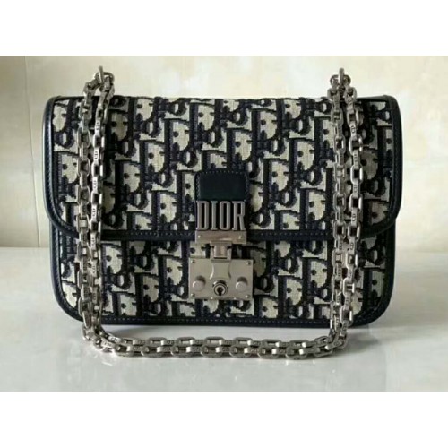 Torba z klapką Dioraddict z płótna Dior, zapięcie na podpis i odpinany łańcuszek z starego metalu w odcieniu srebra.