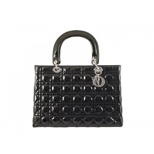 Duża torba ze skóry lakierowanej Dior w kolorze czarnym