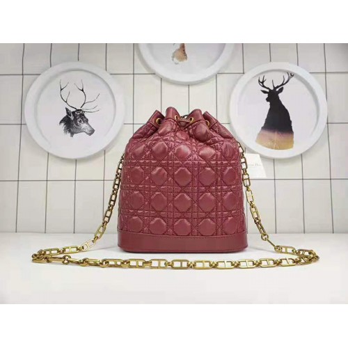 Dior Miss Dior Lambskin Bucket Bag Burgundy