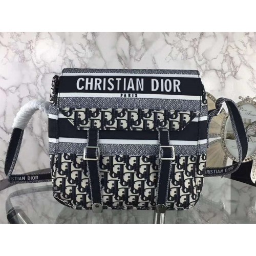 Torba kurierska w kolorze czarnym. Dior Skośne haftowane płótno.