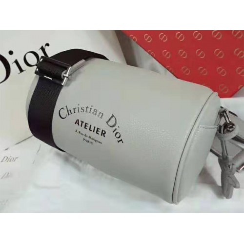 "Roller" woreczek z jeansowej szaroziarnistej skóry cielęcej z nadrukiem „Christian Dior Atelier”.