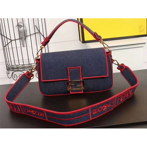 Fendi Baguette Duża Torebka Jeansowa Niebiesko-Czerwona