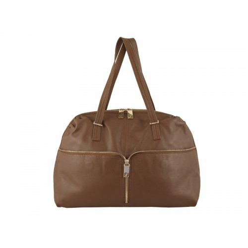 Fendi Skórzana Torba na Zamek Błyskawiczny z Przodu Brązowa