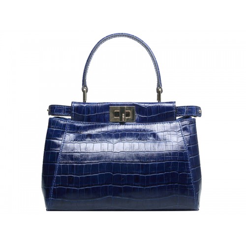 Torebka Fendi Iconic Mini Peekaboo ze skóry krokodyla w kolorze niebieskim