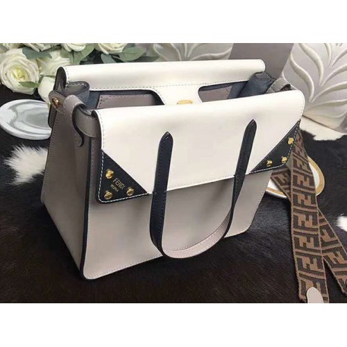 Fendi Średnia torebka z klapką Regular Leather Tote Biała