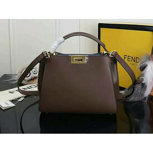 Torebka Fendi Peekaboo Essential ze skóry cielęcej w kolorze ciemnobrązowym
