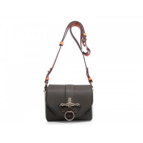 Silvertone 'Obsedia' sprzęt z przodu i kieszeń przesuwna z tyłu na zewnątrz. Regulowany płaski skórzany pasek na ramię.