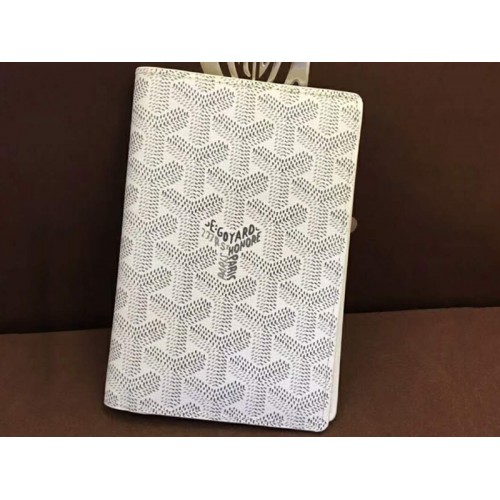 Portfel paszportowy Goyard z pięcioma gniazdami na karty،pojedynczym gniazdem na paszport i wzorem podpisu w całym portfelu.