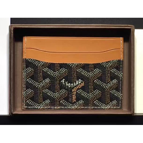 Goyard Goyardine Saint Sulpice etui na karty czarne z brązowymi skórzanymi wykończeniami